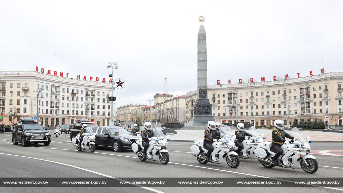 На церемонию были приглашены более 1100 человек. За несколько минут до прибытия Александра Лукашенко внесли Государственный флаг Республики Беларусь и штандарт Президента Республики Беларусь. Символично, что маршрут движения кортежа Президента в сопровождении почетного эскорта мотоциклистов пролегал по двум главным столичным проспектам - Независимости и Победителей.