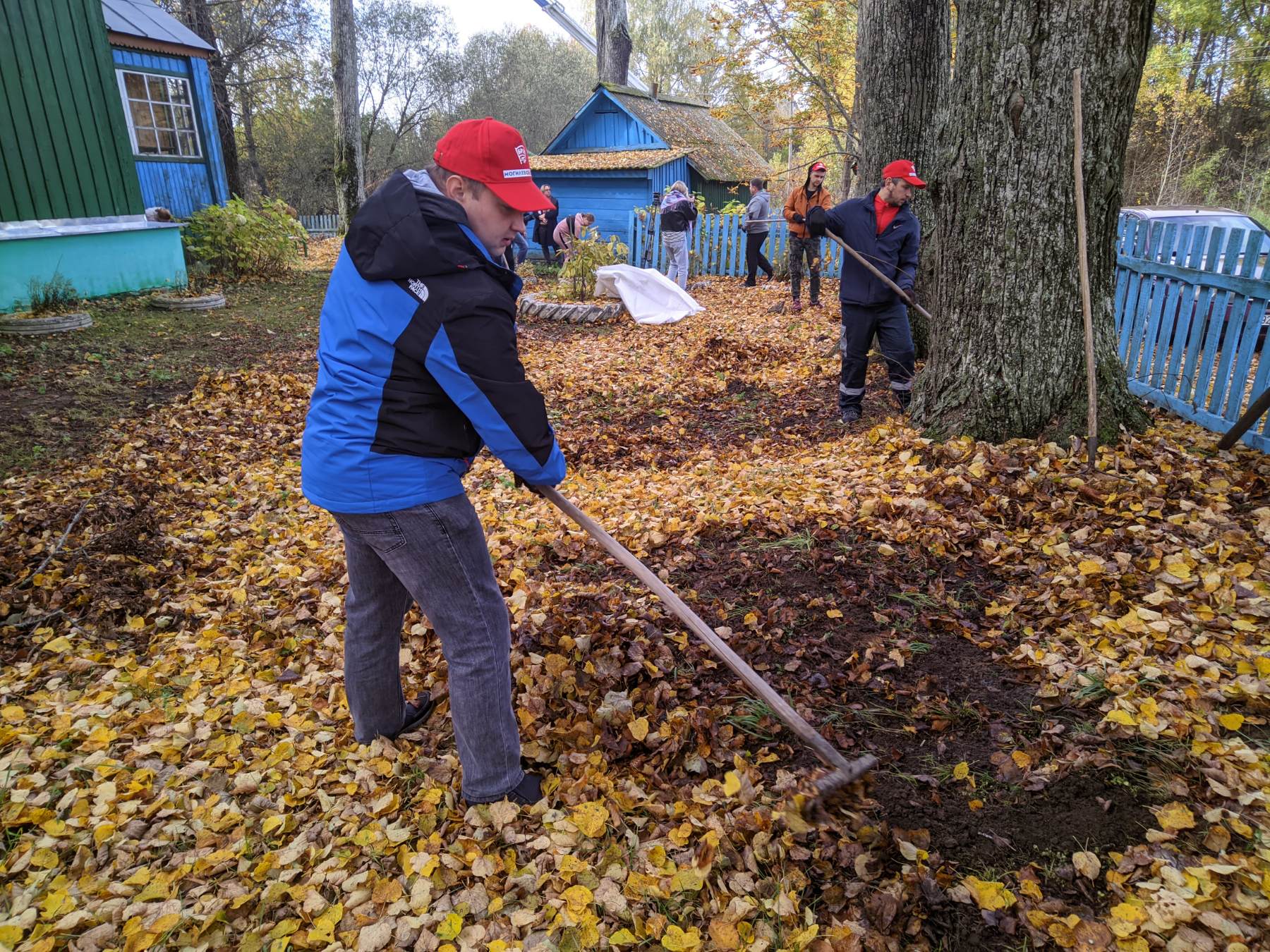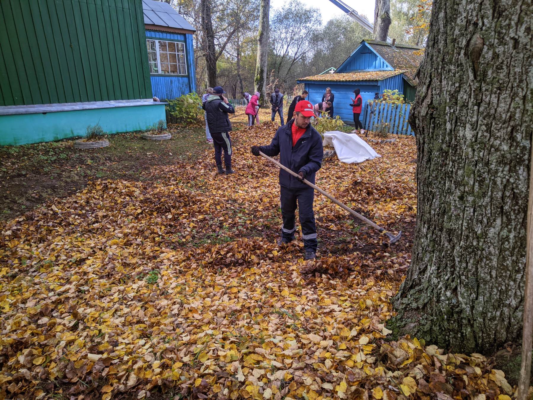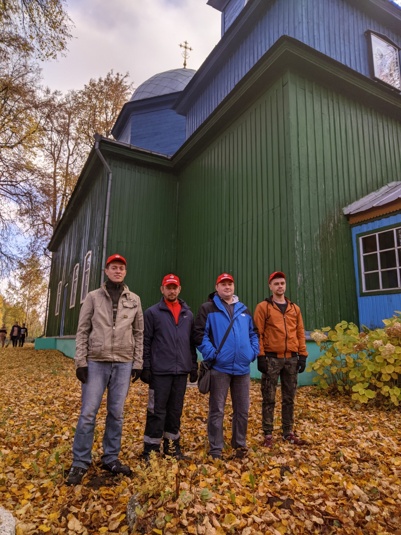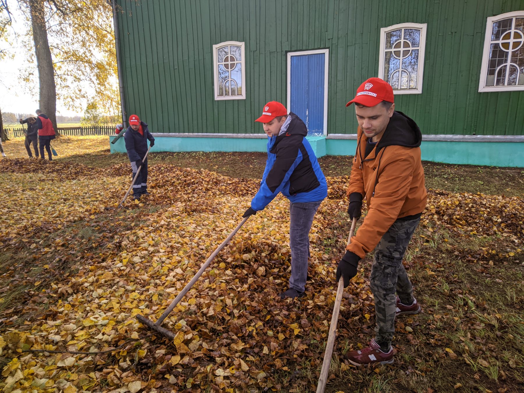 Волонтёров встретил отец Михаил. Он провёл для ребят экскурсию по храму, а также поблагодарил за то, что они нашли время, чтобы помочь благоустроить территорию. На протяжении дня молодые люди убирали возле храма листву, ветви деревьев.