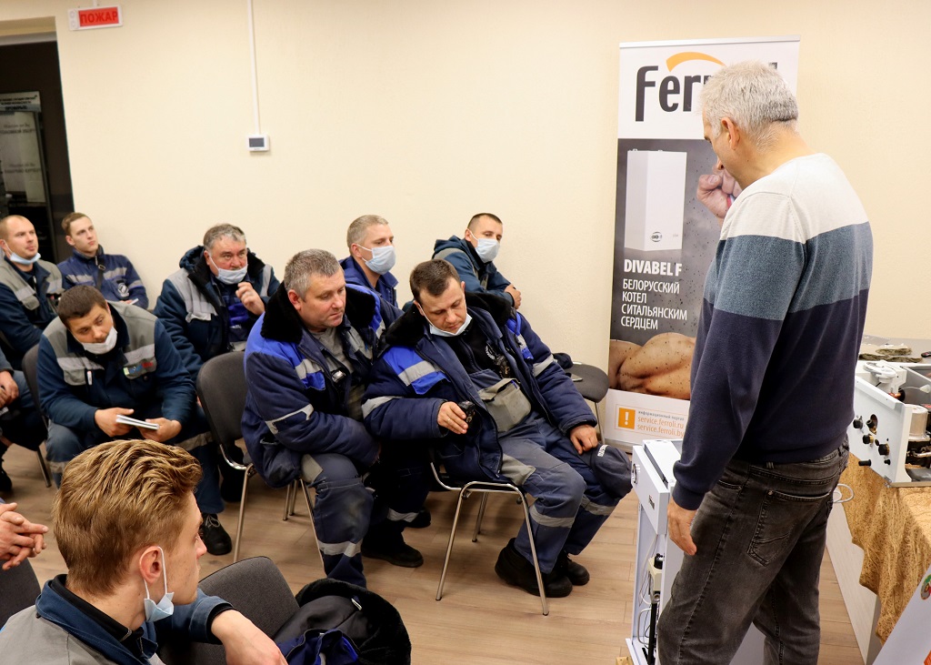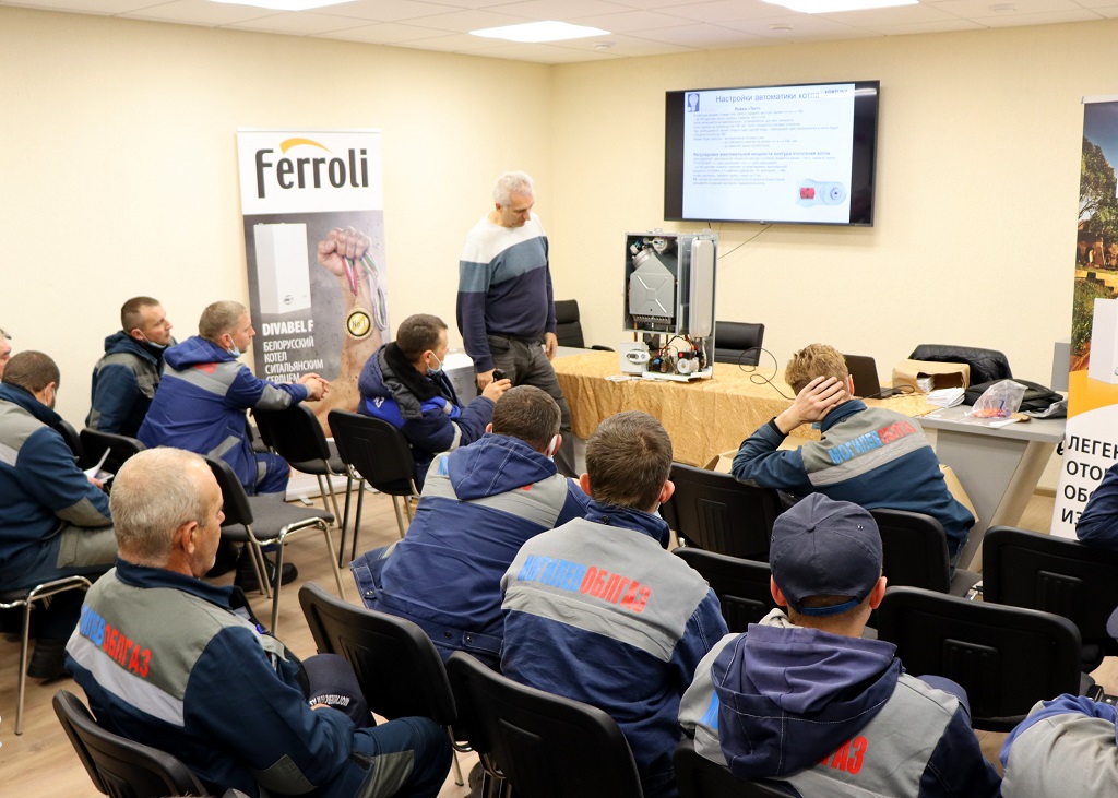 В ходе мероприятия состоялся обзор продукции отопительной техники компании Ferroli, детальное знакомство с конструкцией, принципом работы и настройкой навесных котлов, практическая часть обучения на действующих стендах, моделирующих работу котла на системы отопления и ГВС, включающая настройку параметров работающего котла.