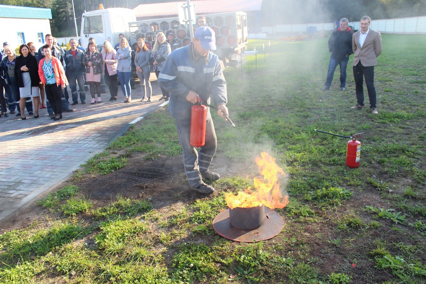9 сентября 2021 г. в Шкловском РГС в рамках Единого дня безопасности прошло практическое и теоретическое занятие с участием представителя обслуживающей организации ООО «ПОЖСПЕЦСЕРВИС», по действиям персонала при возникновении пожаров и чрезвычайных ситуаций на территории предприятия.