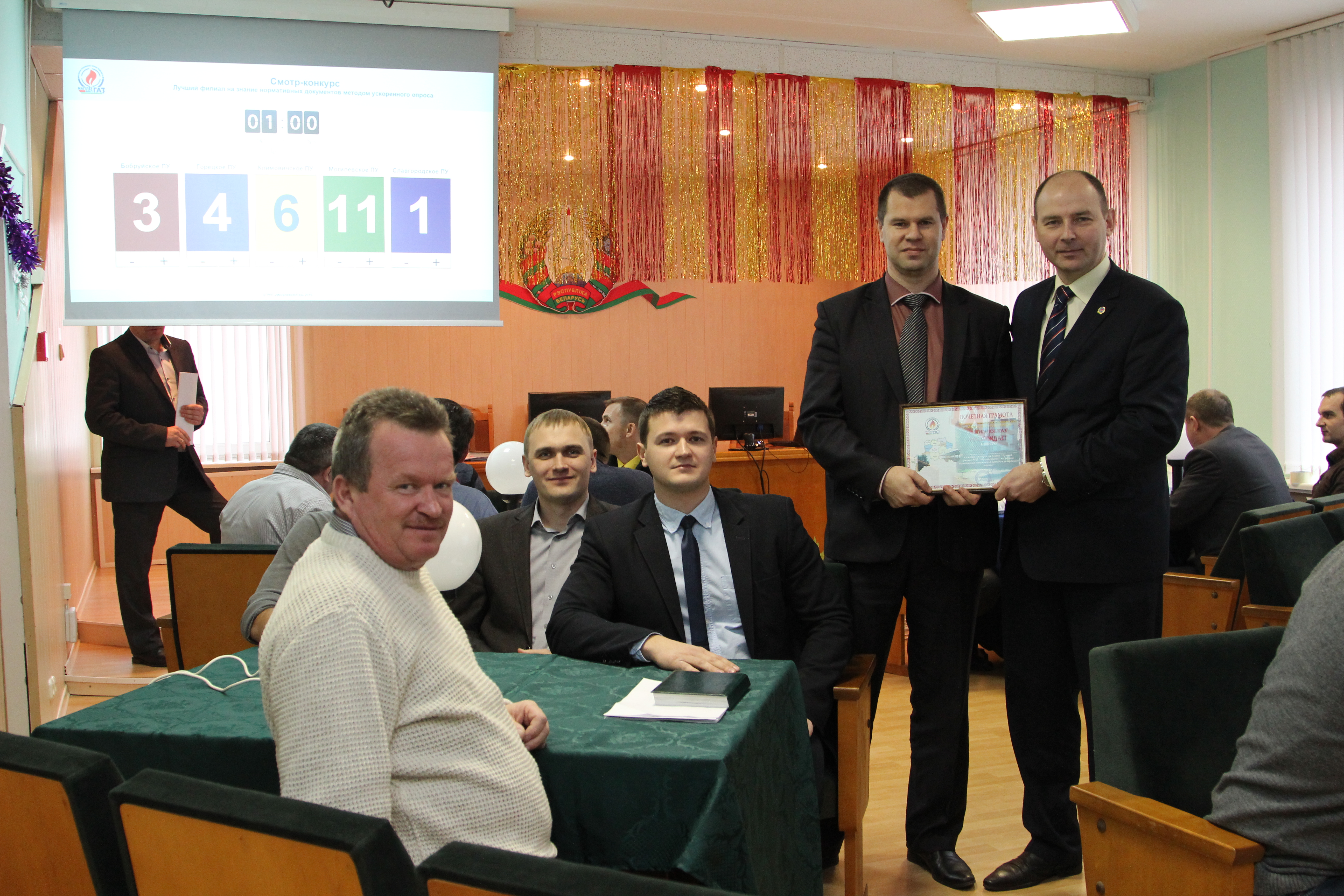29 декабря прошел смотр-конкурс «Лучший филиал РУП «Могилевоблгаз» по знанию нормативных документов методом ускоренного опроса». В конкурсе приняли участие сборные команды всех производственных управлений. Конкурс показал традиционно высокий уровень знаний работников РУП «Могилевоблгаз» - из 30 вопросов без ответа осталось только 2.